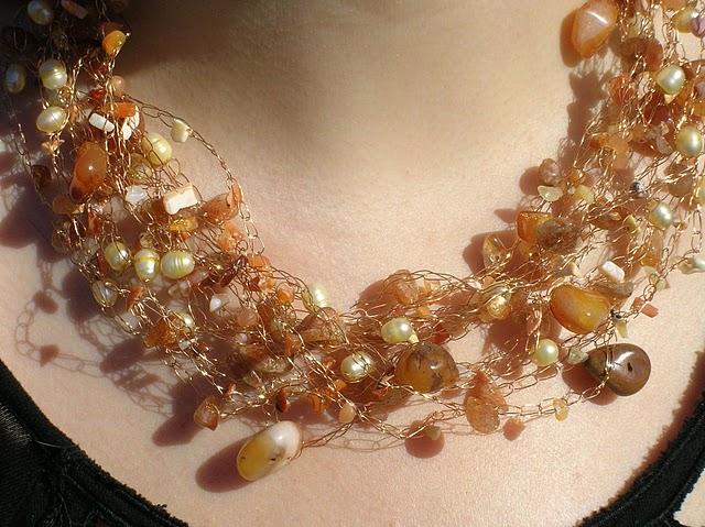 So, this post is a little later than usual and probably much more anticipated.  I’ve been at an art show all weekend selling my jewelry.  Oh, by the way, I make jewelry.  Here’s Peach necklacean example: