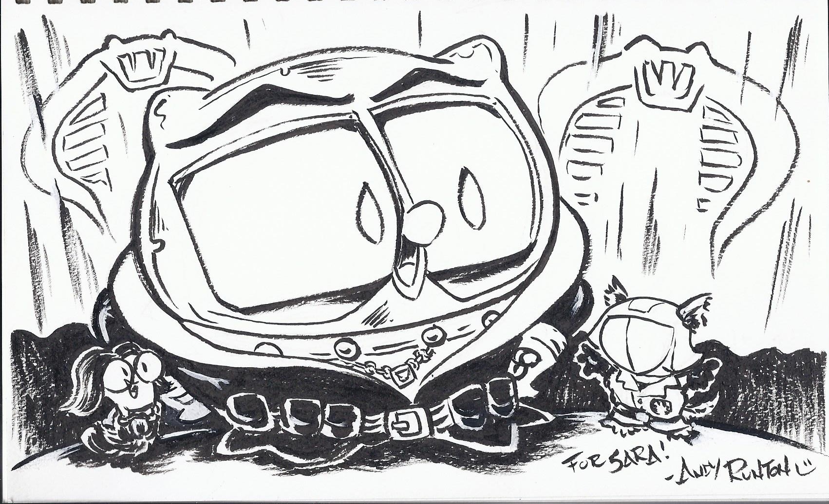 His creator, Andy Runton, is a really nice guy, and I’ve had the opportunity to meet him at several DragonCons. He always does “Owly As” portraits and I’ve got a small collection. I’ve got Owly as Destro and Epic Fantasy! Owly. Somewhere, in another sketchbook I also have Steampunk Owly and Owly as Raccoon Mario.