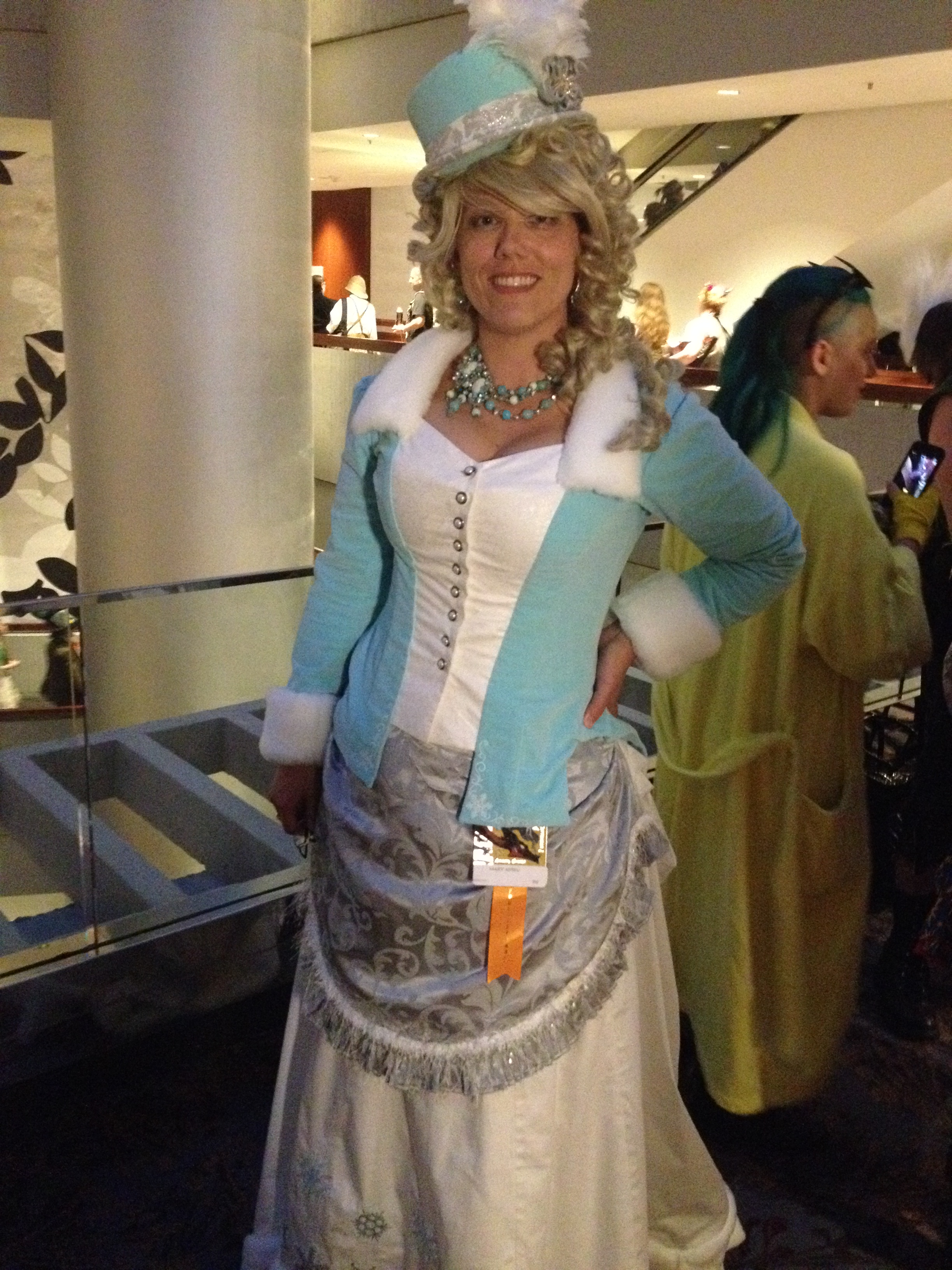 The next panel I went to was on Rococo and Regency costuming and it was fantastic! The panelists were informative and the audience asked interesting questions. They didn’t have any slides, which I believe was because one of the panelists didn’t make it, or possibly the projector was broken? I don’t recall now, but it was still a very valuable panel. The last one I made it to was on Monday. I went to a panel on Plus-Size Costuming. That had some great information, but there wasn’t time to get into too many specifics that I didn’t already have some ideas about. I’m at the point now where I’m at least vaguely aware of most of the information at the more general costuming panels. I may not have a good handle on implementing that information yet, but I am aware of it.