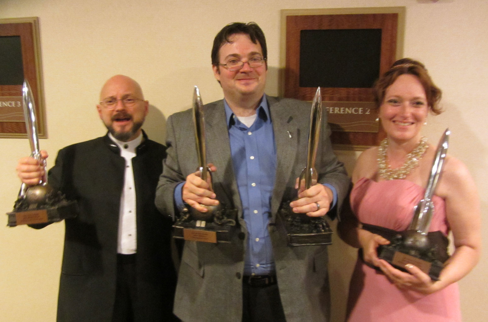 The Writing Excuses Crew (sans Dan) at the Hugo's.  Photo from Wesley Chu's website - http://www.chuforthought.com/im-a-guest-on-writing-excuses/